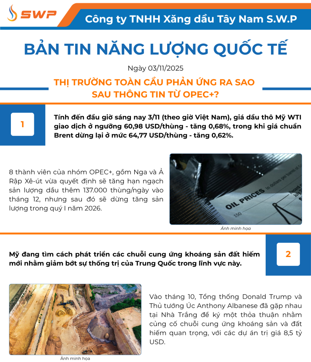 [Infograpic] Bản tin Năng lượng Quốc tế ngày 03/11/2025: Thị trường toàn cầu phản ứng ra sao sau thông tin từ OPEC+?
