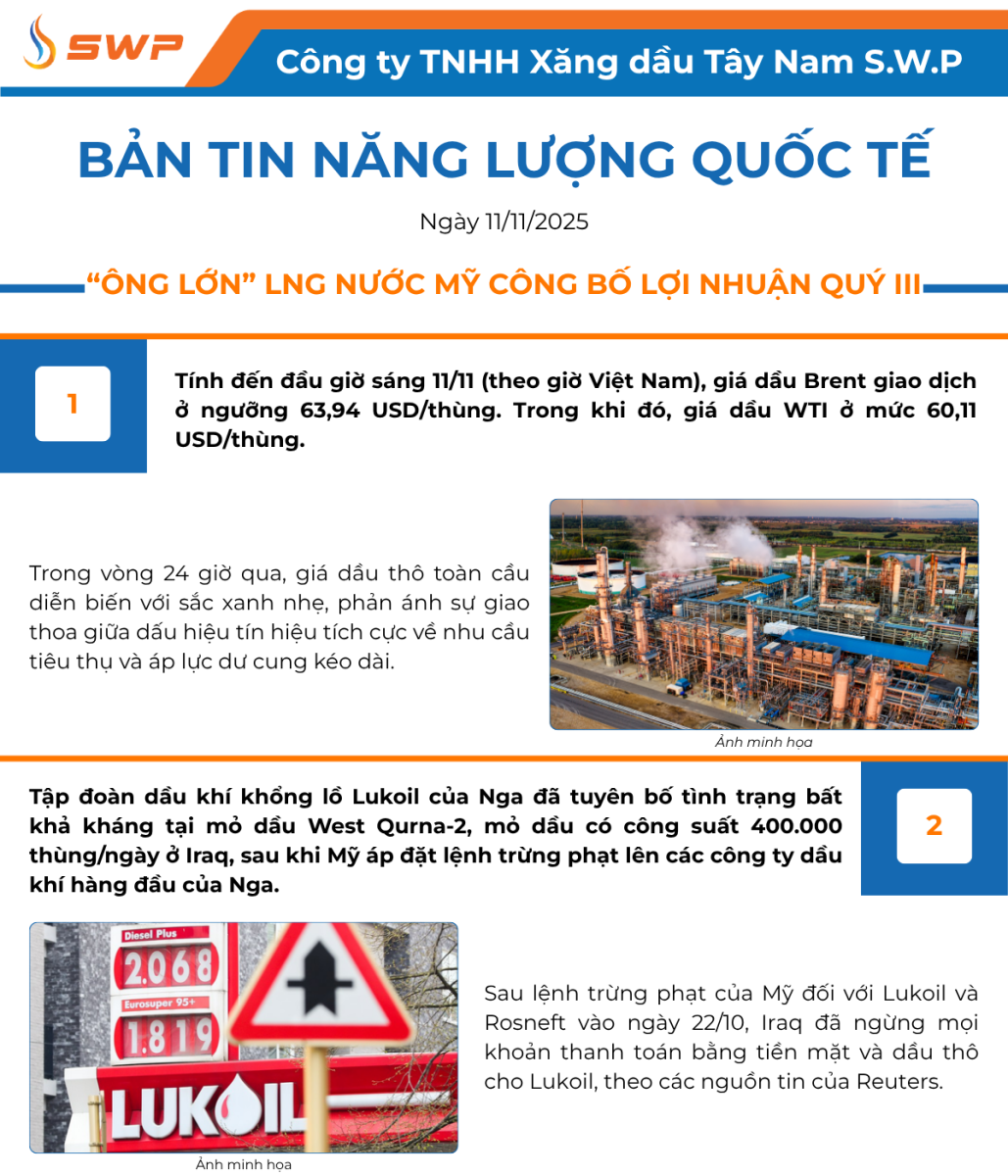 [Infograpic] Bản tin Năng lượng Quốc tế ngày 11/11/2025:“Ông lớn” LNG nước Mỹ công bố lợi nhuận quý III