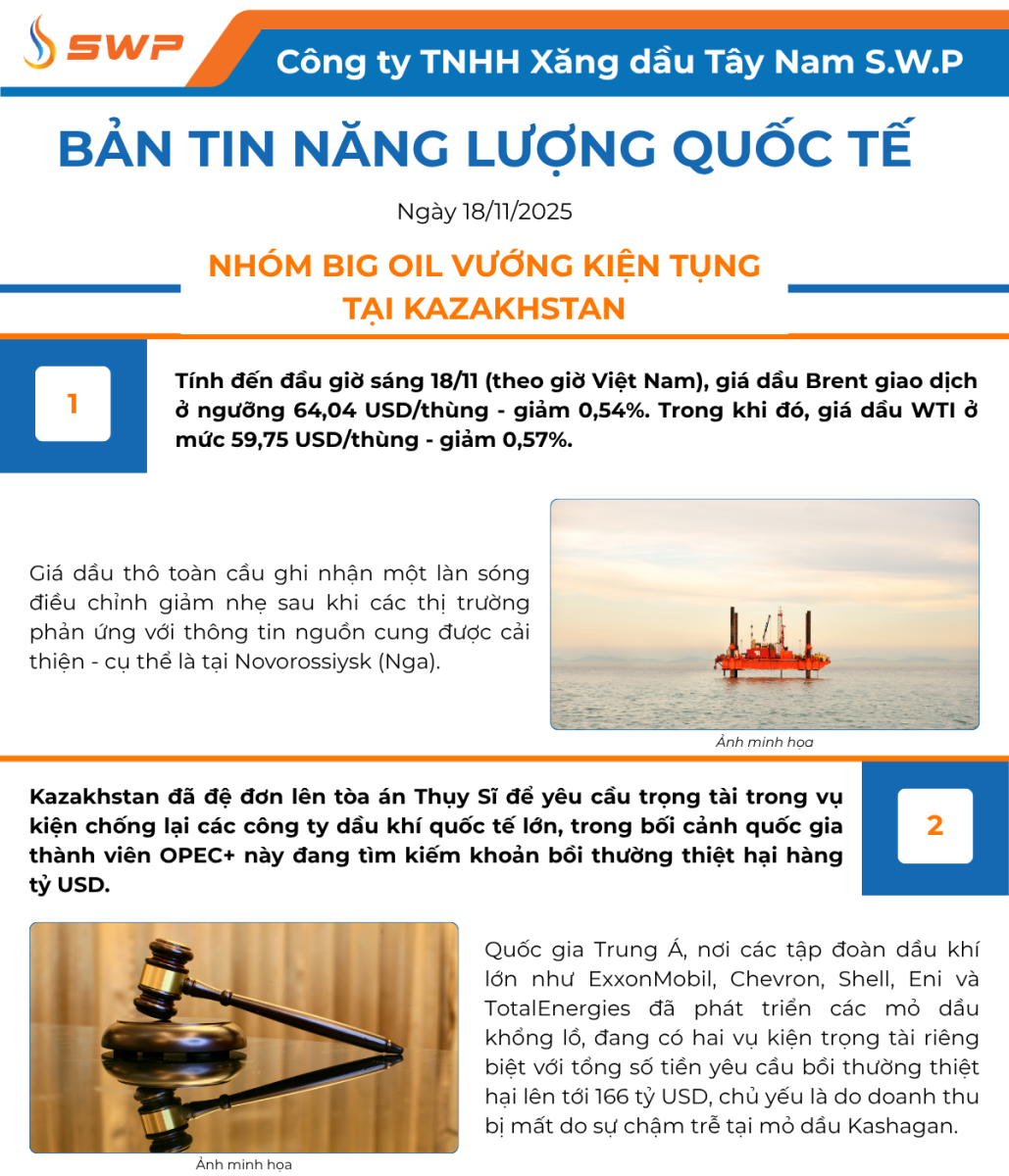 [Infograpic] Bản tin Năng lượng Quốc tế ngày 18/11/2025: Nhóm Big Oil vướng kiện tụng tại Kazakhstan