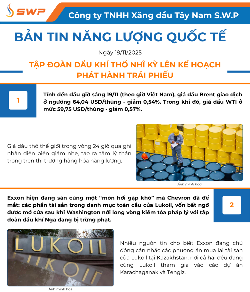 [Infograpic] Bản tin Năng lượng Quốc tế ngày 19/11/2025: Tập đoàn dầu khí Thổ Nhĩ Kỳ lên kế hoạch phát hành trái phiếu