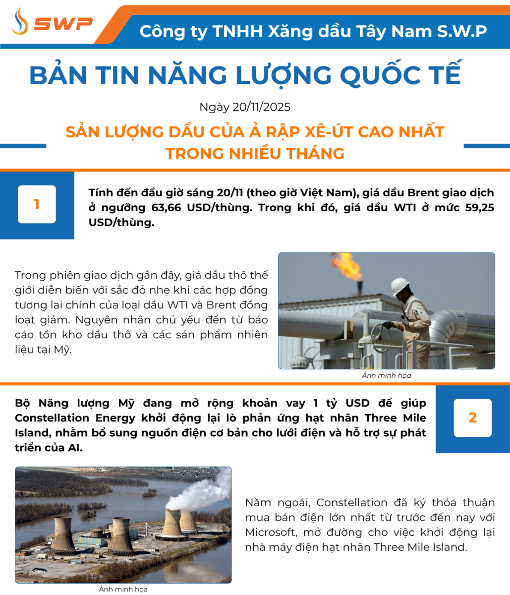 [Infograpic] Bản tin Năng lượng Quốc tế ngày 20/11/2025: Tập đoàn dầu khí Thổ Nhĩ Kỳ lên kế hoạch phát hành trái phiếu