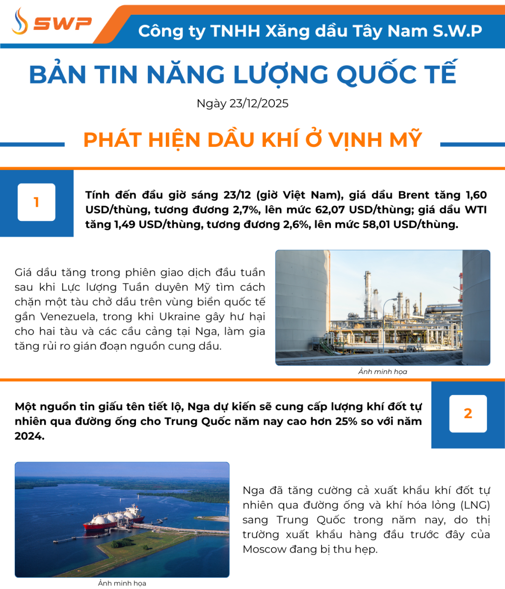 Tây Nam S.W.P xin gửi đến Quý độc giả những tin tức mới nhất trên thị trường Năng lượng Quốc tế.