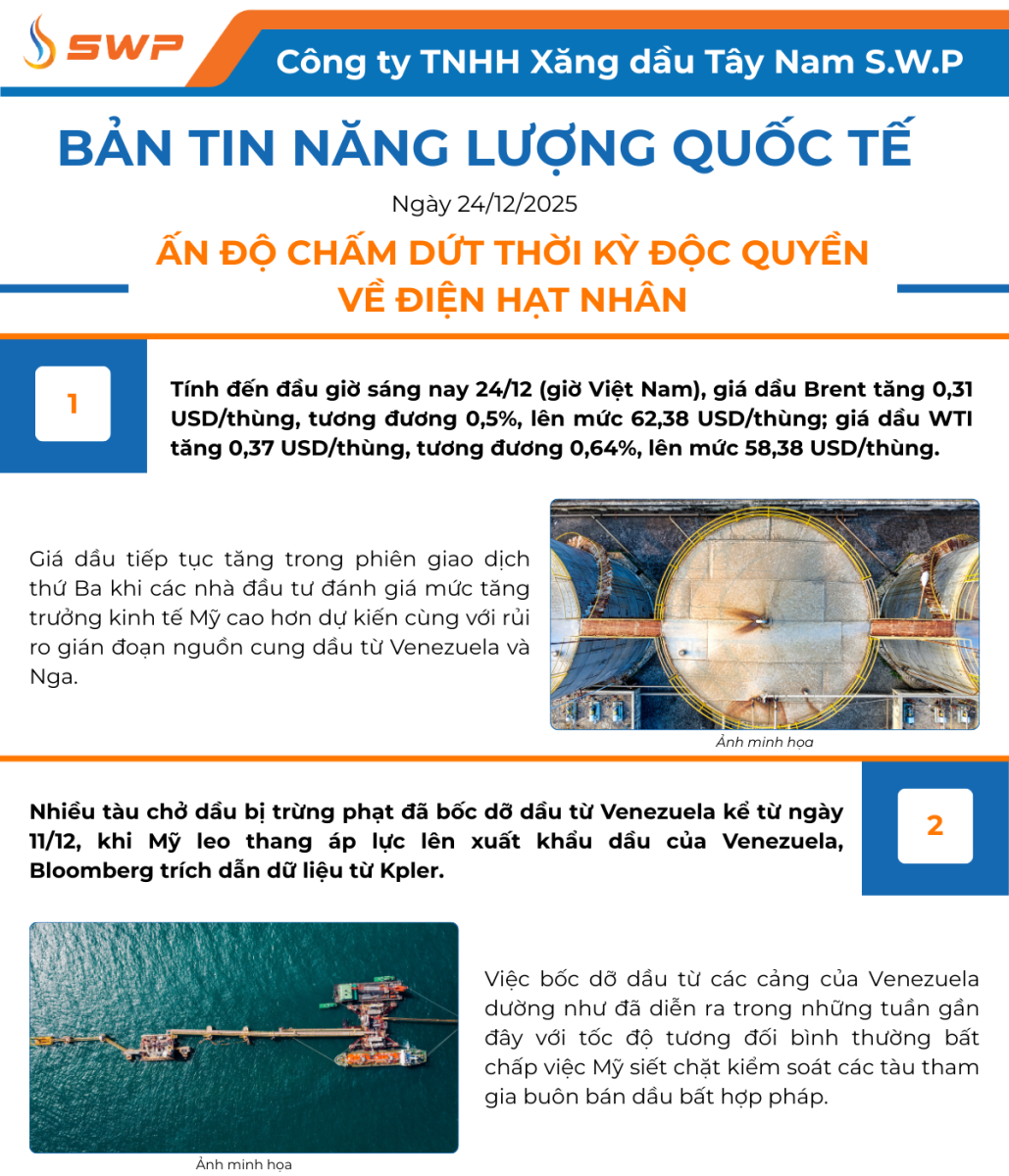 Tây Nam S.W.P xin gửi đến Quý độc giả những tin tức mới nhất trên thị trường Năng lượng Quốc tế.