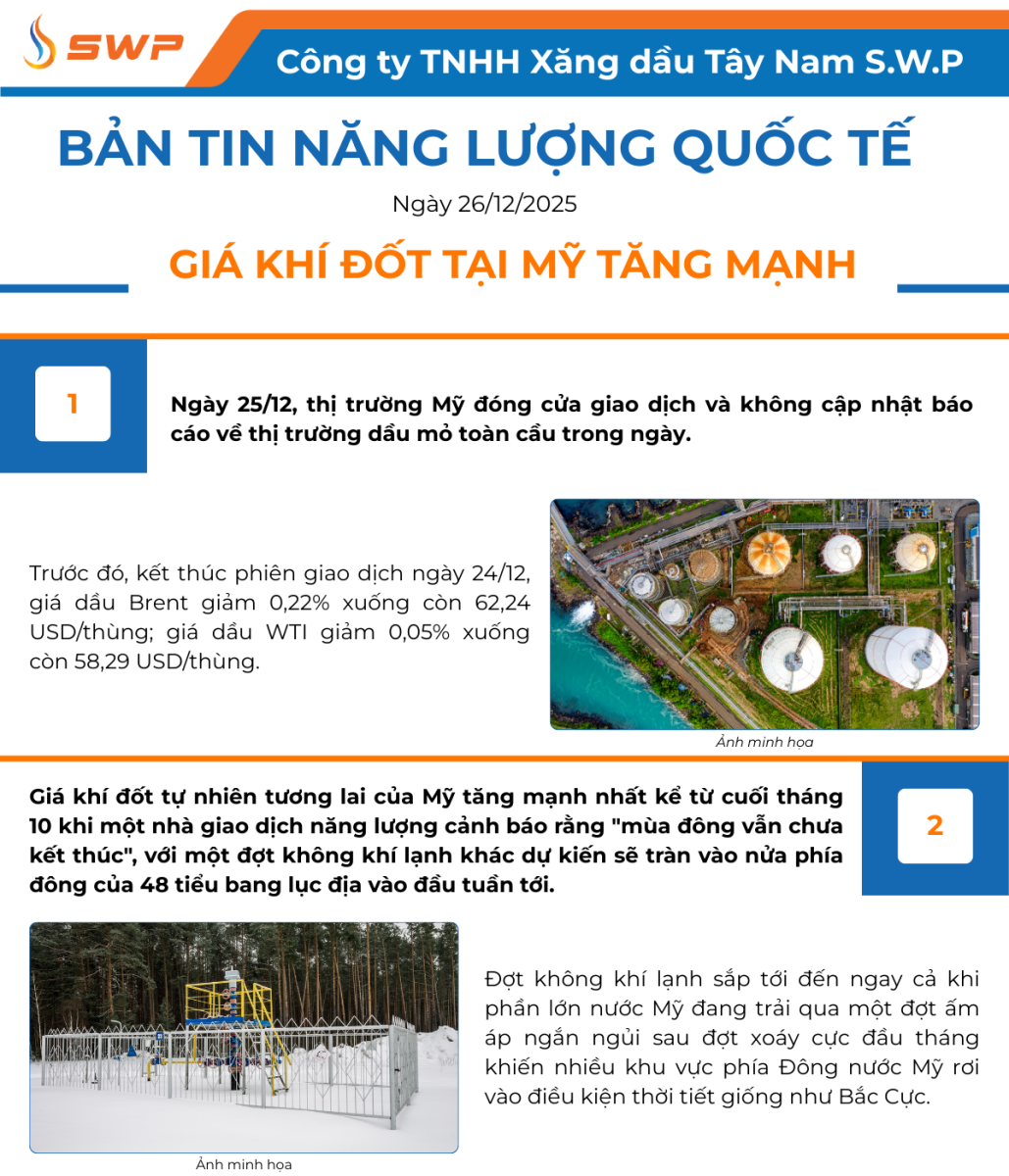 Tây Nam S.W.P xin gửi đến Quý độc giả những tin tức mới nhất trên thị trường Năng lượng Quốc tế.