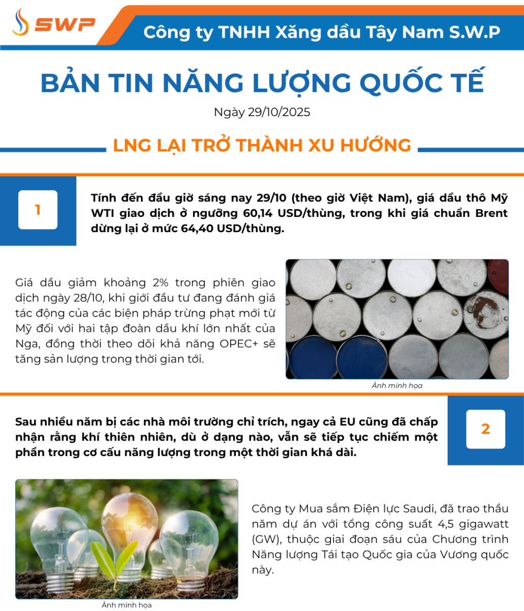 Tây Nam S.W.P xin gửi đến Quý độc giả những tin tức mới nhất trên thị trường Năng lượng Quốc tế.