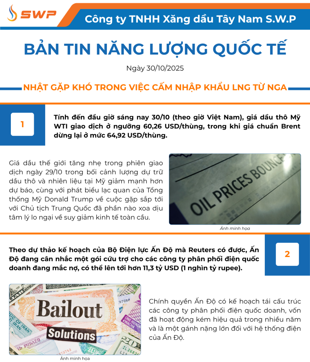 [Infograpic] Bản tin Năng lượng Quốc tế ngày 30/10/2025: Nhật gặp khó trong việc cấm nhập khẩu LNG từ Nga